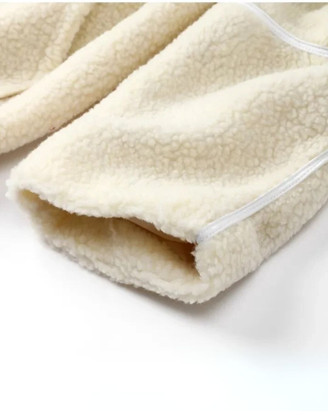 Enjoy ultimate comfort and style with the Lorraine Teddy Jacket. This oversized, loose-fitting jacket is both warm and fashionable. With its plush alpaca wool material, long sleeves, and stand-up collar, it is the perfect addition to your wardrobe for cool weather.