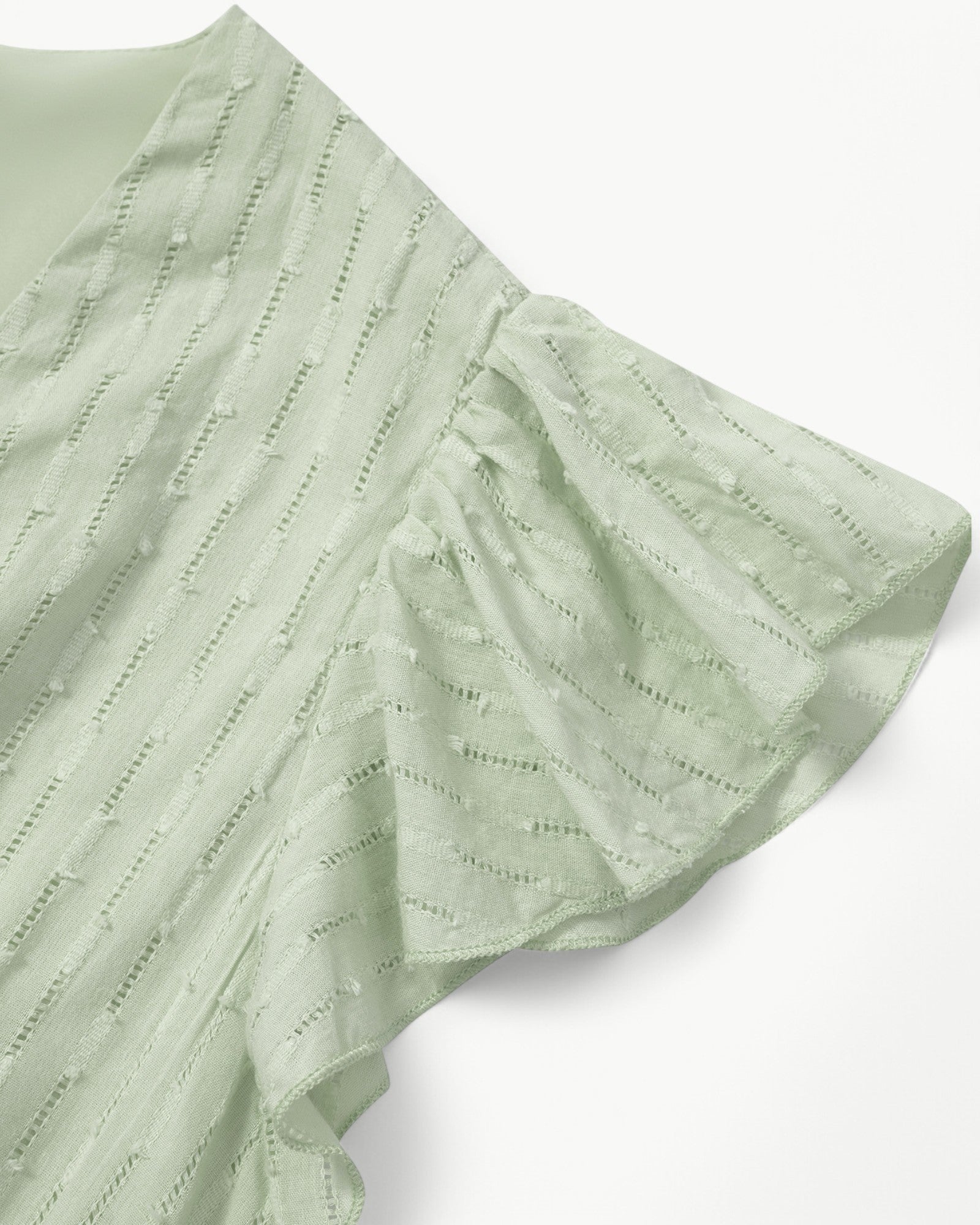 Elegant Flutter Sleeves: Delicate sleeves add charm and lightness while providing subtle upper arm coverage